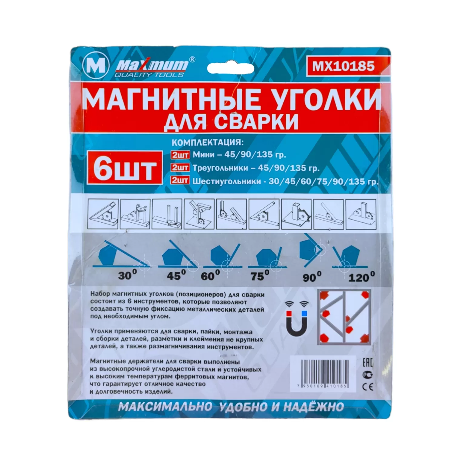 Набор магнитных уголков (позиционеров) для сварки состоит из 6 инструментов, которые позволяют создавать точную фиксацию металлических деталей под необходимым углом. Уголки применяются для сварки, пайки, монтажа и сборки деталей, разметки и клеймения не крупных деталей, а также размагничивания инструментов.