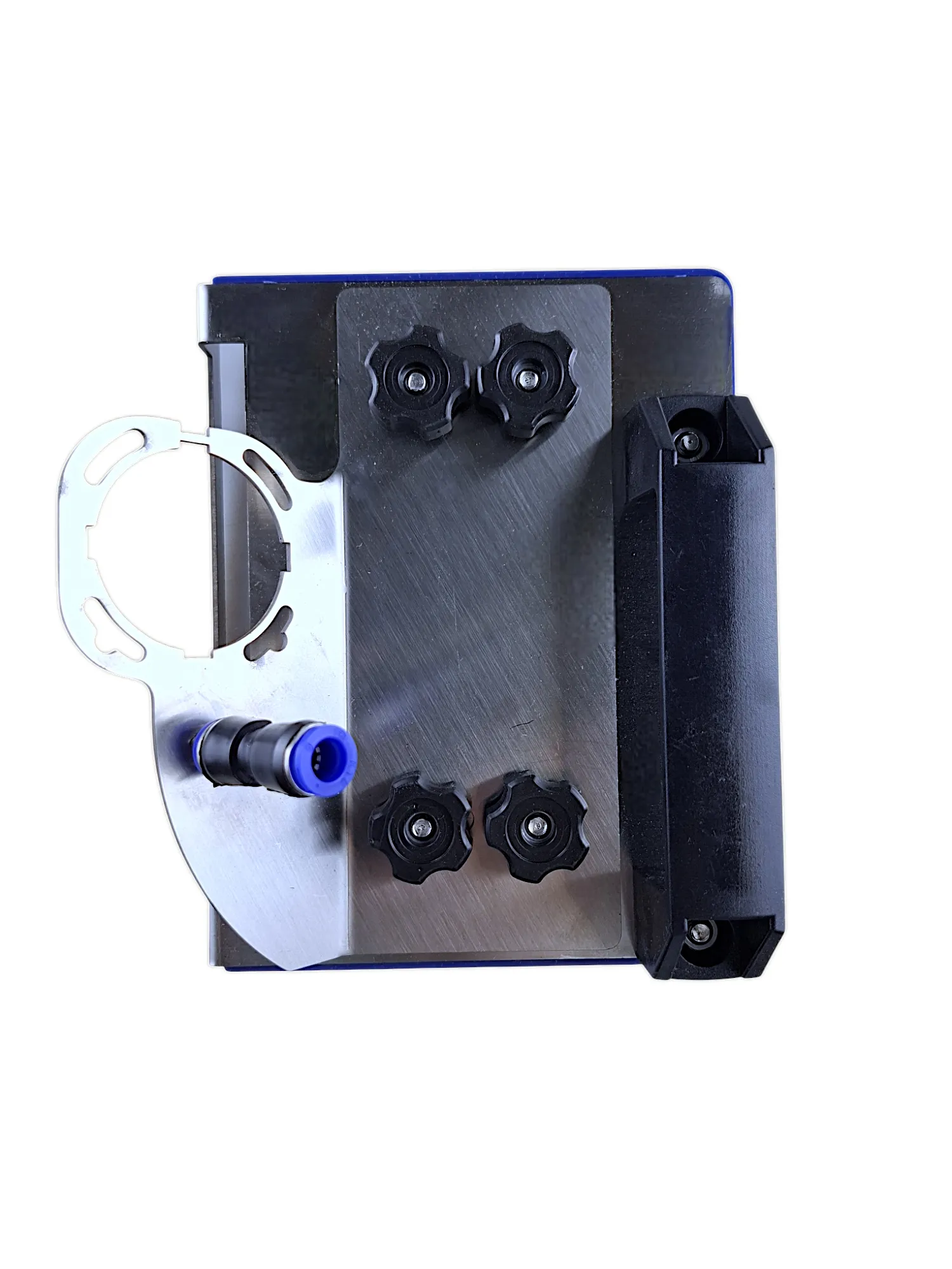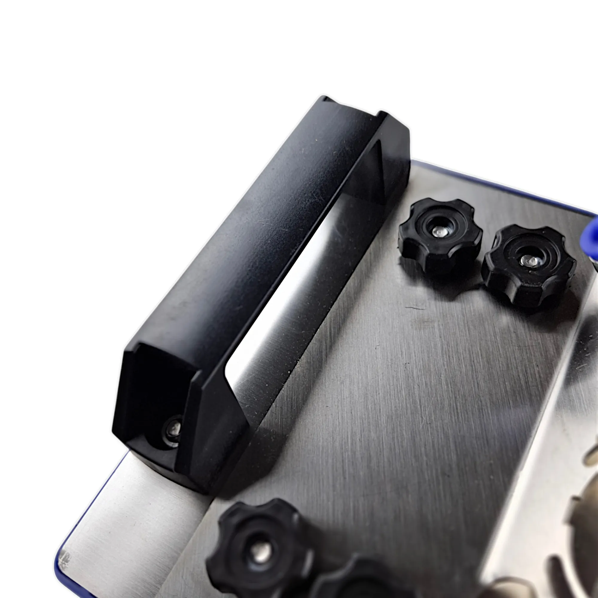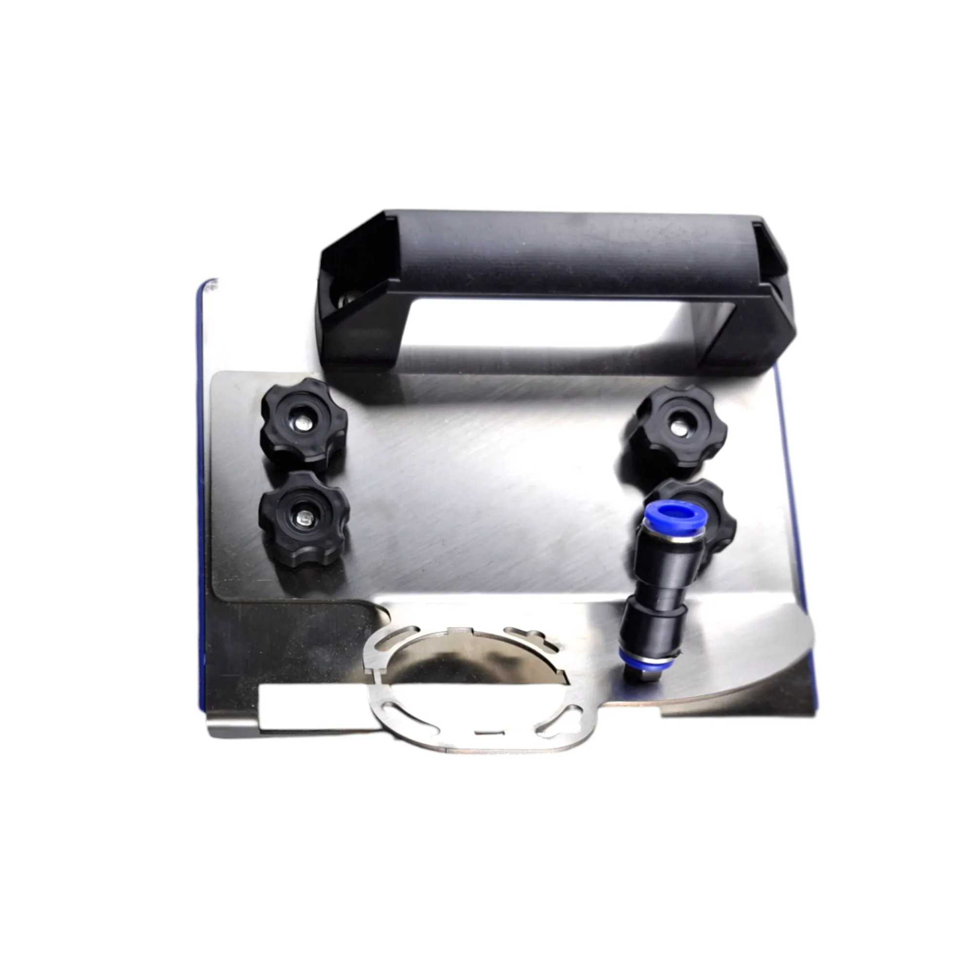 Подставка стабилизирует УШМ, обеспечивая плавное движение и минимизируя сколы. Удобная рукоять не скользит и не вибрирует в руке. Универсальный крепеж фаскоснимателя для УШМ подходит для большинства болгарок (Makita, Bosch, DeWalt и др.)
