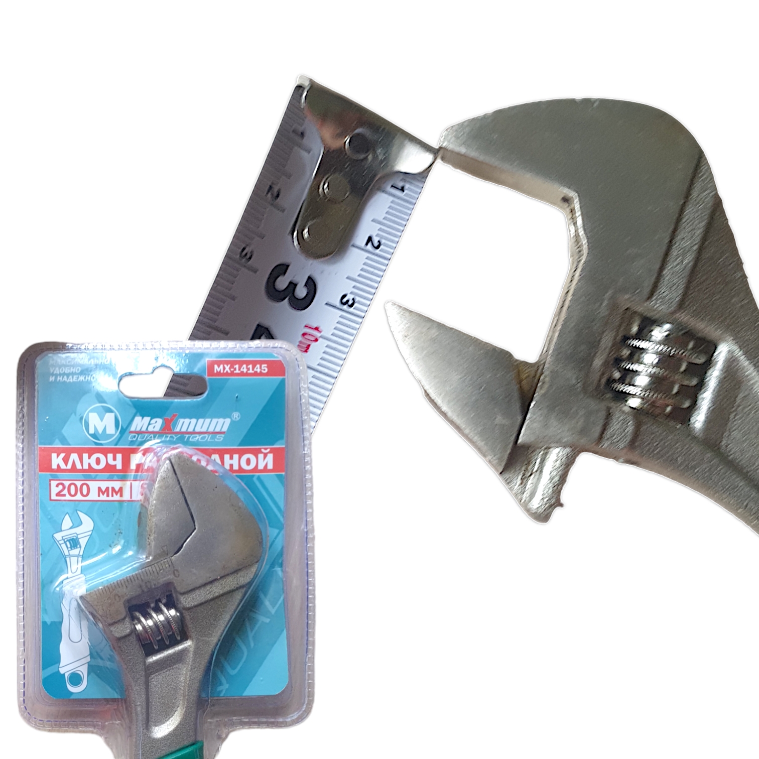 Ключ разводной 200 мм с двухкомпонентной рукояткой,тонкие губки,фосфатирован,МХ5577-8,MAXIMUМ (2857)