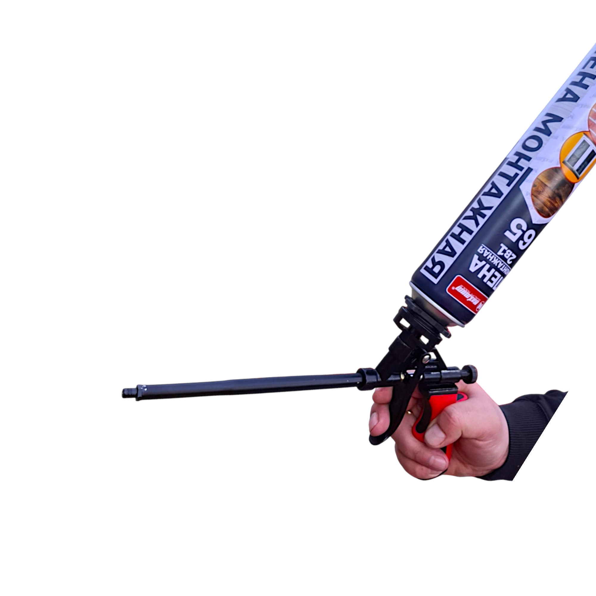 Пистолет для пены с тефлоновым покрытием от Maximum Quality Tools используется профессионалами для точного и дозированного нанесения монтажной пены на поверхность.