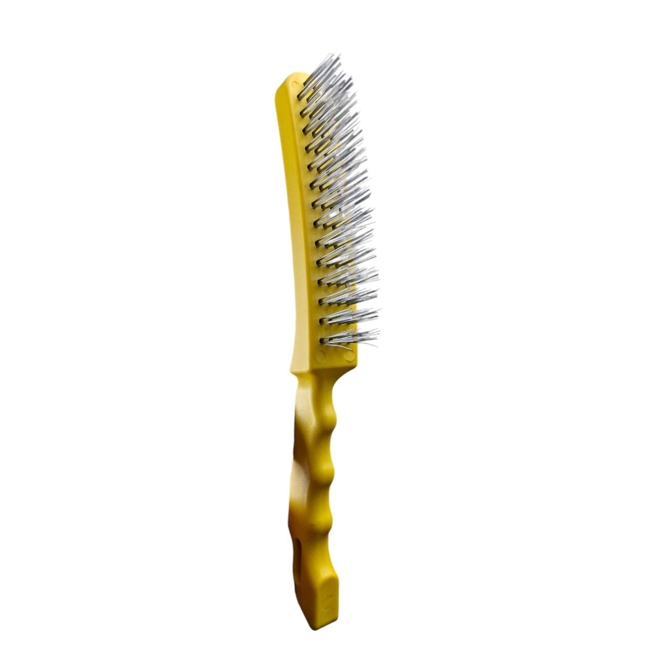 Четырехрядная щетка с жестким металлическим ворсом 25 мм предназначена для эффективного удаления стойких загрязнений. Инструмент незаменим для подготовки поверхностей, борьбы с коррозией и грубой обработки материалов.