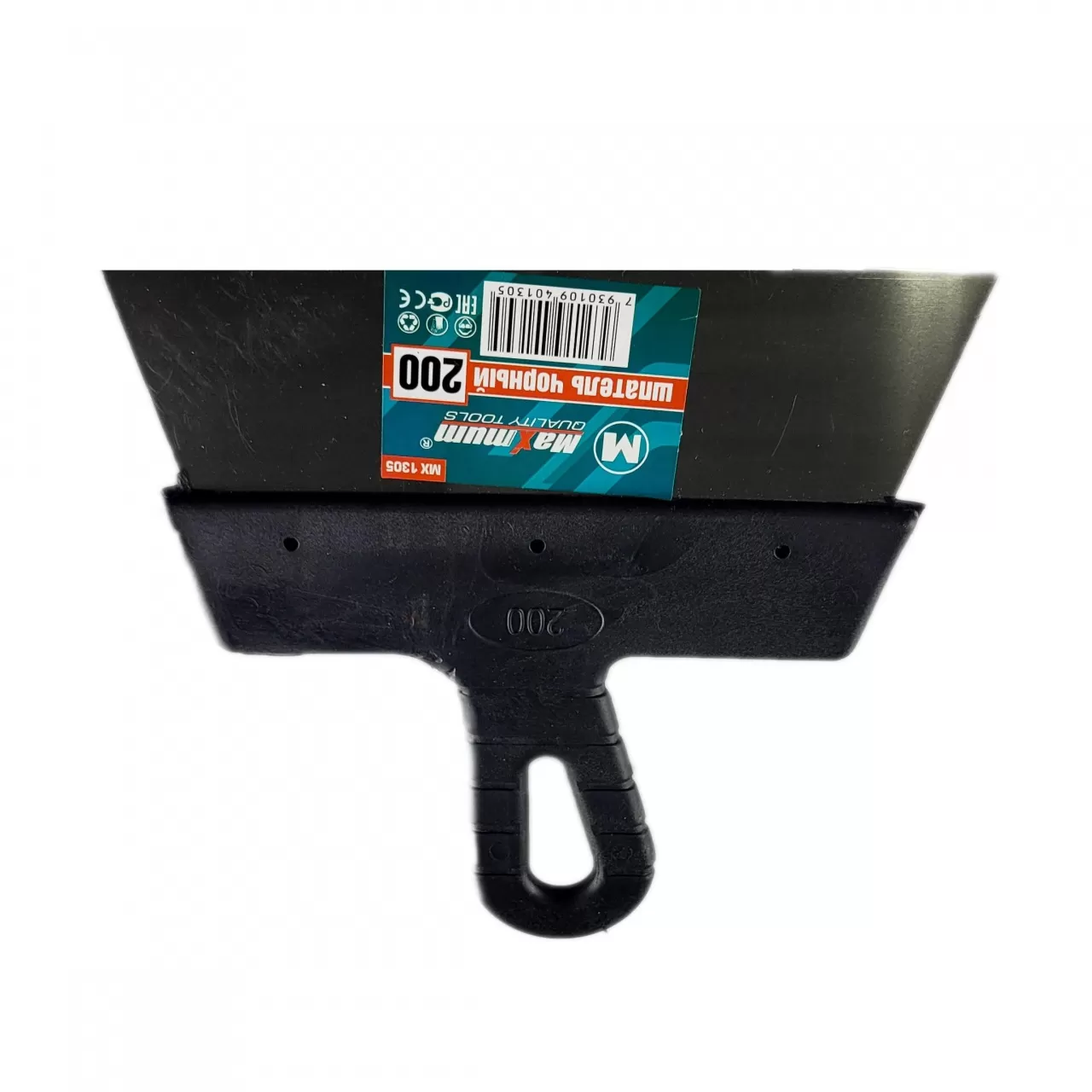 Шпатель для шпаклевки профессиональный 200 мм предназначен для внутренних работ и обладает оптимальной шириной для нанесения штукатурных составов на узкие участки стены. Пластиковая рукоятка расположена под углом к лезвию - это позволяет снизить нагрузку на запястье при длительной работе. Трапециевидный шпатель 200 мм выполнен из нержавеющей стали, устойчивой к коррозии. Ударопрочная облегченная пластиковая ручка с отверстием для подвешивания и удобного хранения имеет специальную форму, что обеспечивает максимально удобную работу.