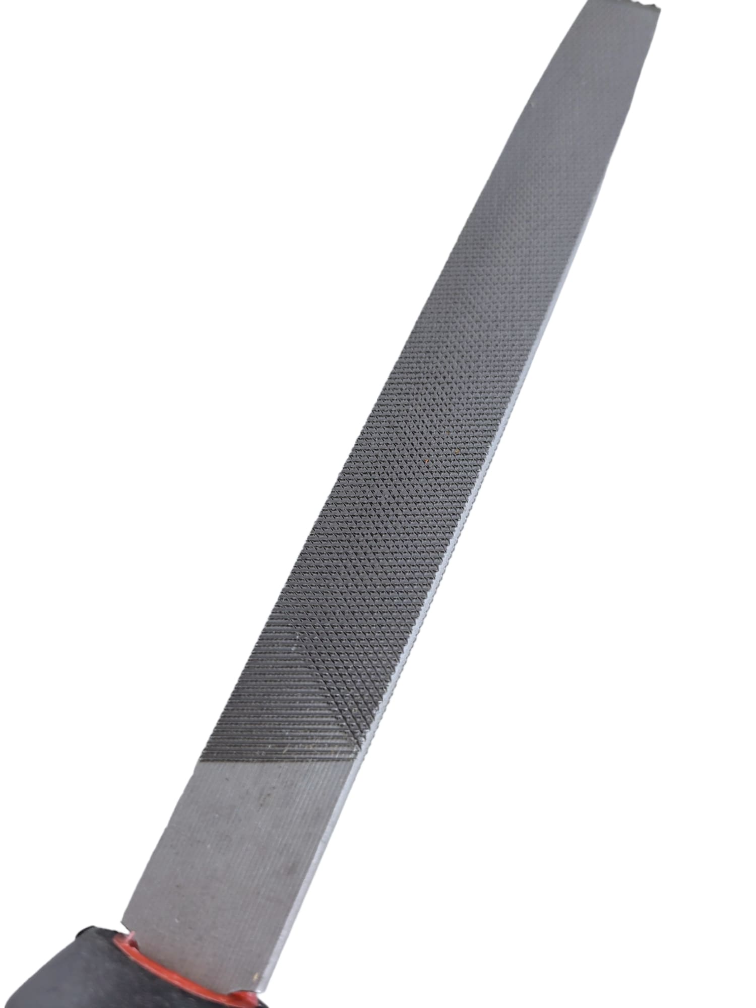 Рукоятка покрыта двухкомпонентным антискользящим материалом. Такой напильник не гнется в процессе обработки заготовки. Это обеспечивает качественную работу с металлом в мастерских и на производствах.