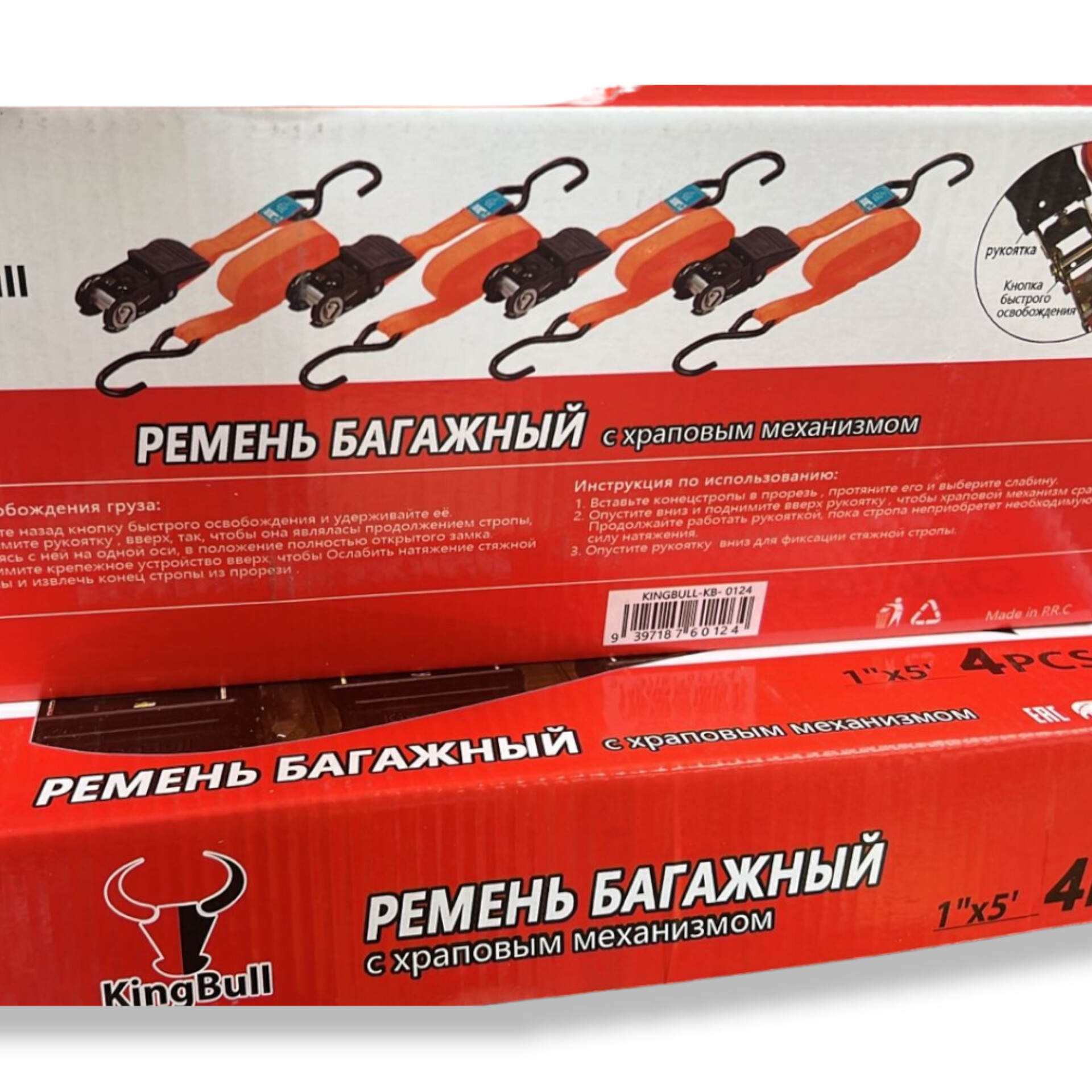 Ремни для крепления груза с храповым механизмом и крюками созданы для фиксации багажа и крепления небольших грузов (коробки, мебель и т.д.) к верхнему или прицепному багажнику легкового автомобиля, фургона и других транспортных средств. Прочная лента из полипропиленовых нитей двойного плетения не деформирует фиксируемый груз и имеет относительное удлинение не более 7 % при максимально допустимой рабочей нагрузке. Храповик стяжного багажного ремня имеет пластиковое покрытие и оснащен удобным механизмом разблокировки. Надежный зубчатый механизм предотвращает ослабление натяжения ремня во время движения транспорта. Крюки и храповый механизм выполнены из прочной стали.