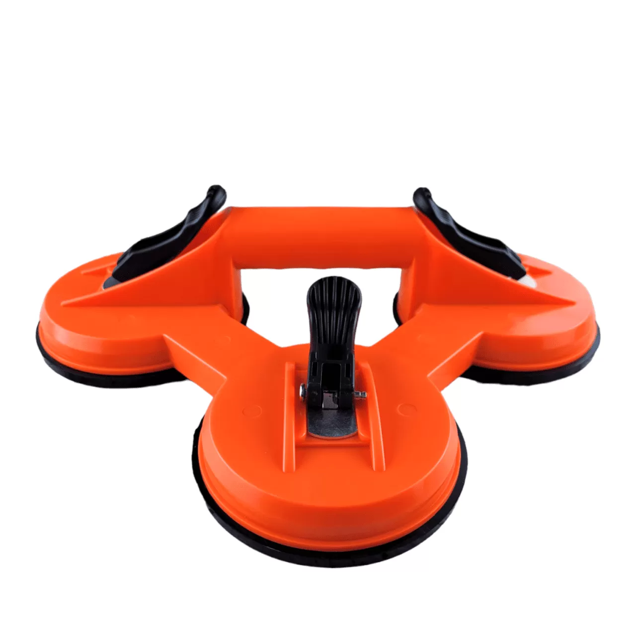Присоска для стекла тройная пластиковая предназначена для транспортировки листового металла и стекла, глазурованной кафельной плитки и пластика. Корпус изготовлен из ударопрочного ABS пластика. Благодаря трем мощным вакуумным присоскам диаметром по 12см., инструментом можно поднять тяжелый хрупкий груз. Перед применением требуется обязательно обезжирить поверхность поднимаемого изделия.