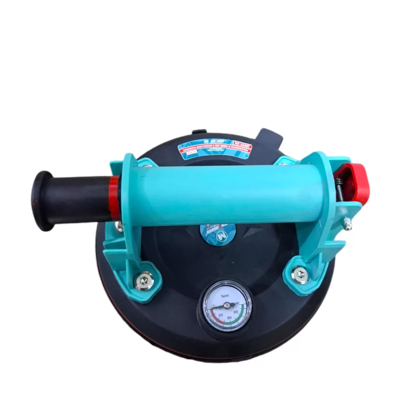Стеклодомкрат или помповая вакуумная присоска 150 мм от "MAXIMUM QUALITY TOOLS" с манометром и ручным насосом предназначена для гладкой плитки, стекла и других материалов. Грузоподъёмность до 50кг. Вакуум создаётся благодаря ручному поршню. Присоска оснащена индикаторной линией и манометром - на них имеется красная метка, которая предупреждает о снижении давления и необходимости подкачки. В комплекте есть надежный пластиковый кейс для удобства хранения и транспортировки. Вакуумный стеклодомкрат 150 мм подходит для ручной обработки стекла, мрамора, плитки и других гладких поверхностей. Изделие необходимо использовать в горизонтальной или вертикальной плоскости.