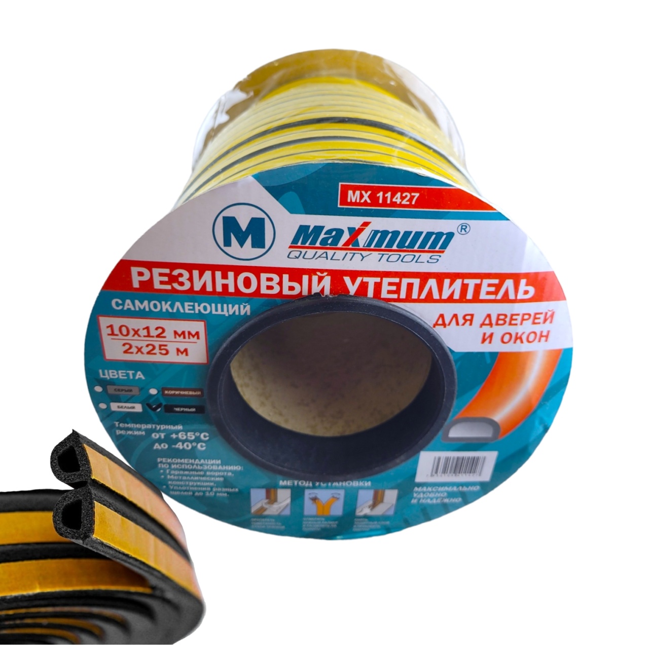 Уплотнитель резиновый самоклеящийся большой 2x50 м,сечение 9х6мм,профиль "D",белый,«Maximum» MX11410