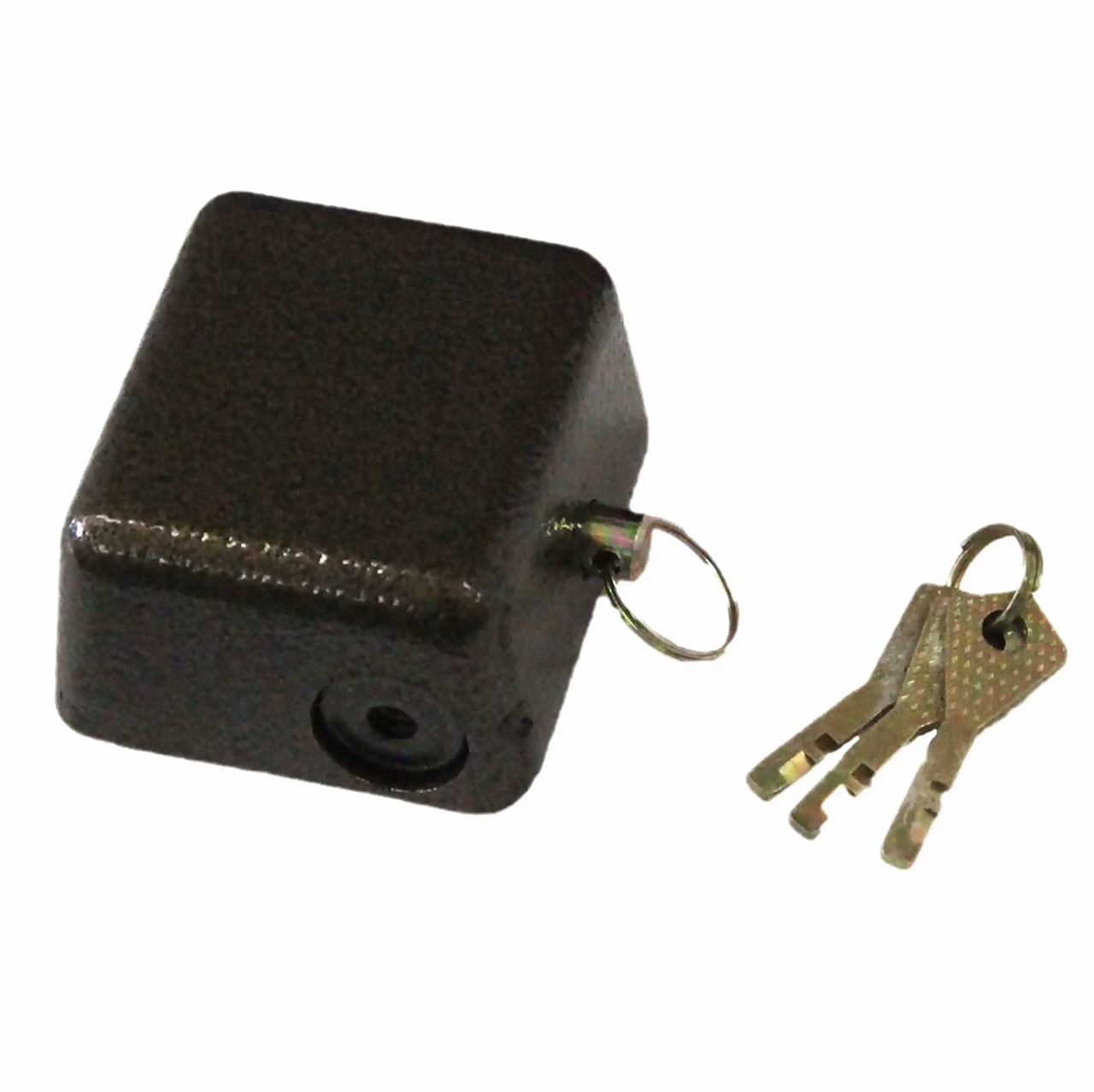 Корпус изготовлен из высокопрочного чугуна и покрыт порошковым антикоррозийным покрытием, что гарантирует долгий срок службы. Форма корпуса замка исключает попадание воды во внутренний механизм.