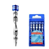 Кованая бита снабжена магнитным наконечником, который позволяет надежно зафиксировать ее в насечках шурупа и предотвратить соскальзывание насадки шуруповерта.