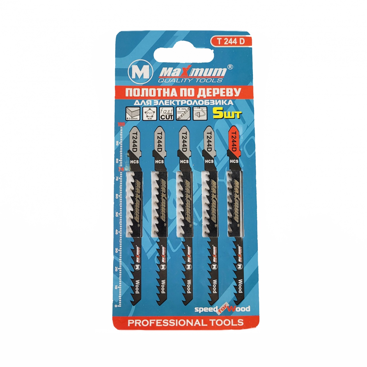 Пилки для лобзика HCS используются для чистого реза дерева, фанеры, ламината и т. д. Имеют Т-образное крепление для установки в стандартный электролобзик. С их помощью осуществляют чистый пропил мягкой древесины, ДСП, столярных плит, ДВП от 3 до 30 мм толщиной, а также полимерных материалов диаметром не более 30 мм. Изготовлена пилка из углеродистой стали HCS и ее шлифованные зубья расположены под свободным углом. Пилка делает тонкий круговой пропил. Размер шага зубьев 4 мм.