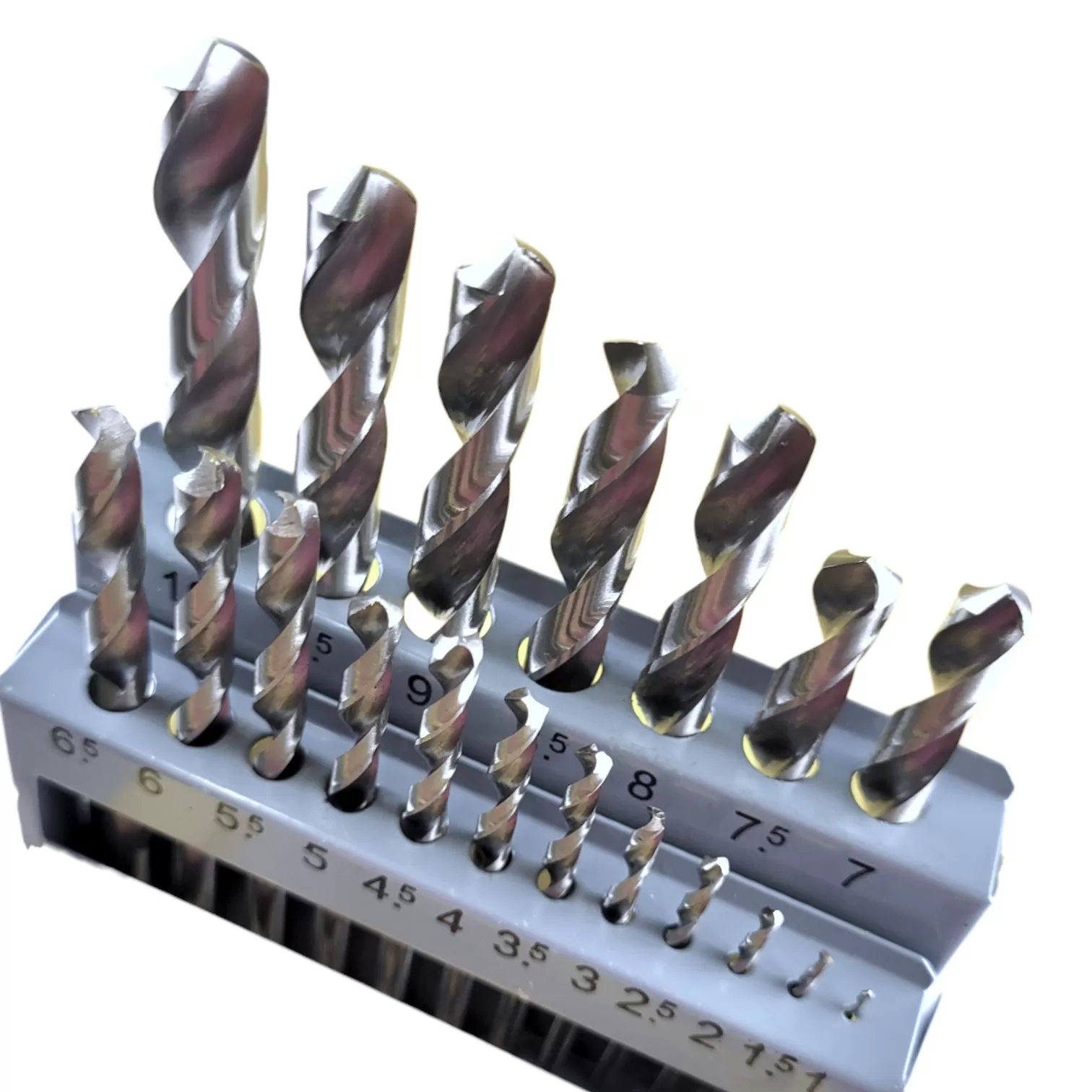 В наборе представлены самые популярные размеры винтовых высокопрочных сверл HSS. Это качественные насадки с отличной заточкой и высоким ресурсом, которые оборудованы цилиндрическим хвостовиком.