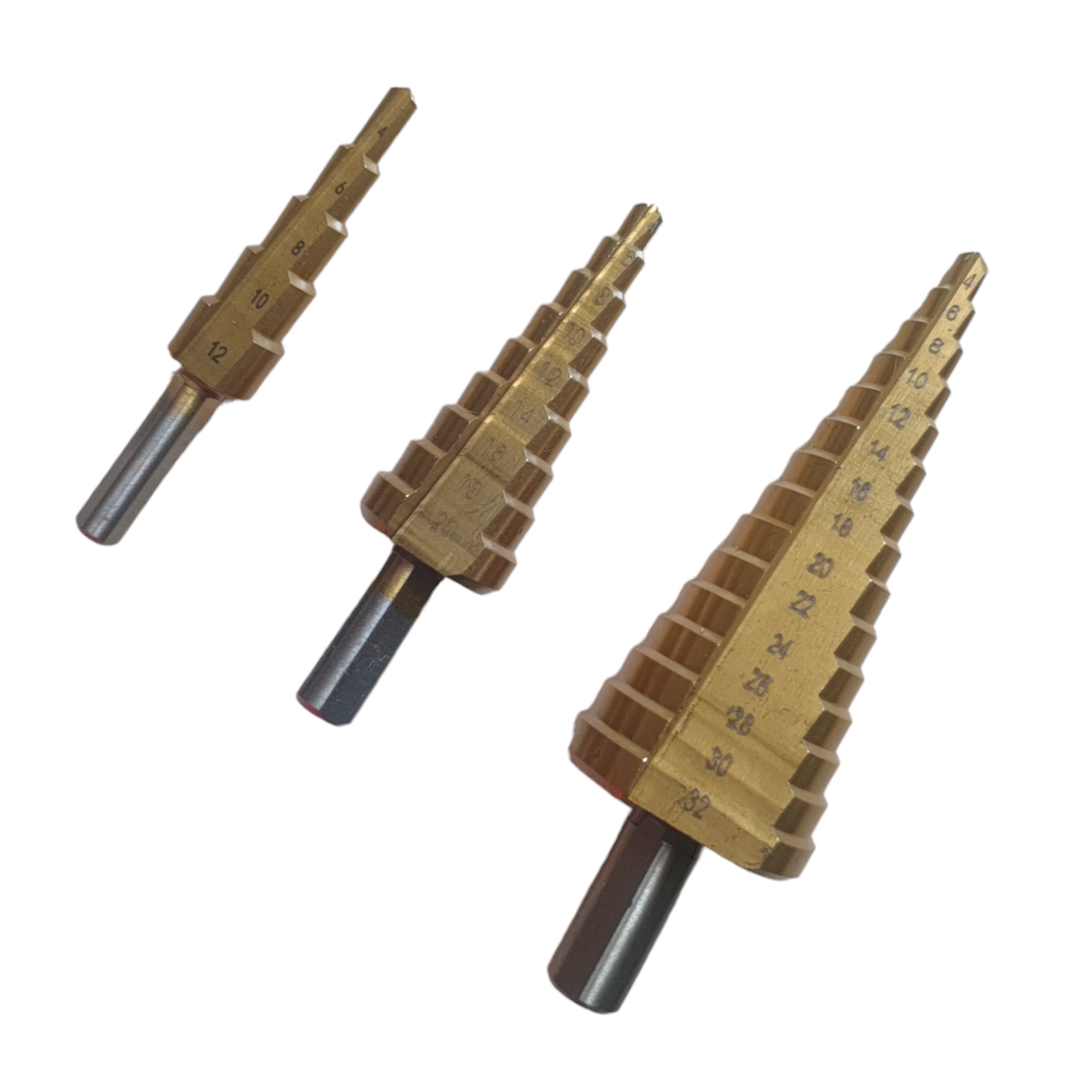 Набор сверл ступенчатых на 4-12 мм, 4-20 мм ,4-32 мм предназначен для работ с металлическими поверхностями. Сверла имеют ступенчатую конструкцию, что значительно расширяет диапазон их действия и повышает точность выполнения работ. Данные насадки используются на сверлильных станках и с электродрелями.